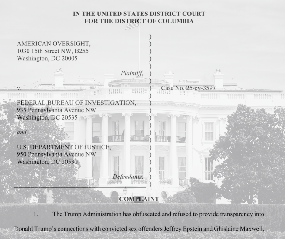 American Oversight Sues DOJ and FBI for Records of Any Trump Interviews in Epstein Investigation