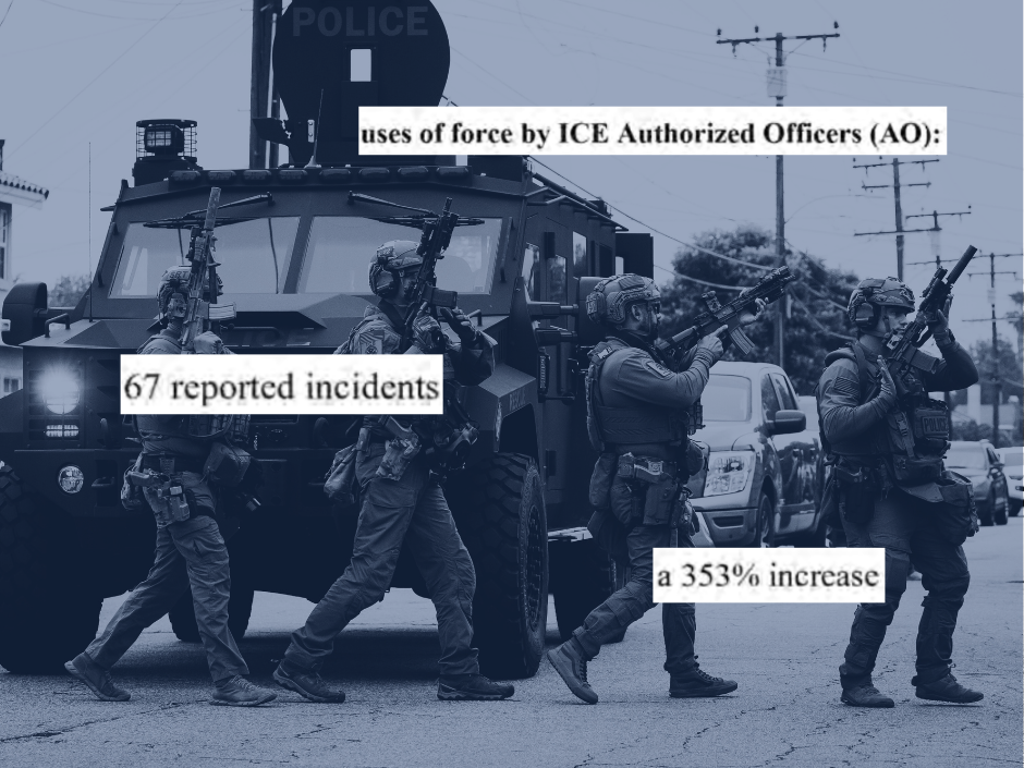 But reports of violence by ICE officers contain instances of agents shattering car windows, deploying chemical agents, and using extreme physical force to detain individuals. In the first two months of Trump’s second administration, the documents show a 353 percent increase in use of force. The official tasked with overseeing ICE field operations was informed on March 20 that officers’ use of force was up nearly four-fold compared to the year before.